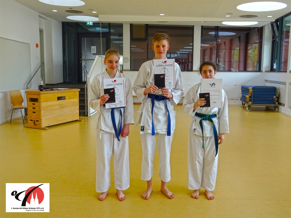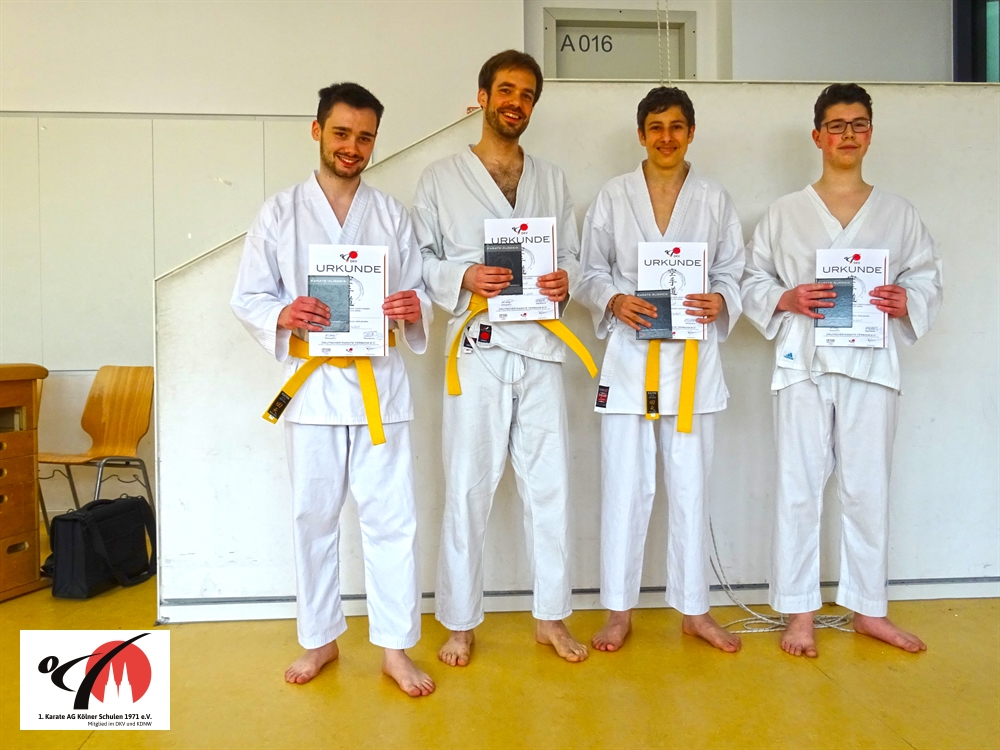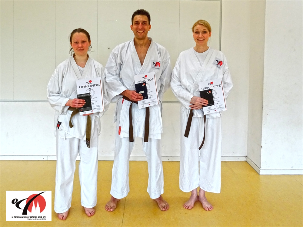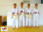 [03.04.2017] Am 1. April 2017 wurden im Rahmen des Frühjahrslehrganges mit Jörg Kopka (5. Dan) Gürtelprüfungen abgehalten. Die Prüflinge waren alle gut vorbereitet, so dass die Prüfer Max Iserloh (2. Dan, B-Prüfer) und Eva Mona Altmann (4. Dan, B-Prüferin) niemanden durchfallen lassen mussten. Herzlichen Glückwunsch an alle und trainiert weiterhin fleißig!