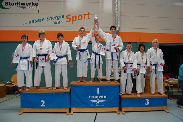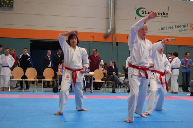 [Update 06.05.2010] Bei der Landesmeisterschaft Jugend/Junioren am 24.04.2010 in Kempen holte unser Kata-Team Bronze und qualifizierte sich für die Deutsche Meisterschaft am 12./13.06.2010 in Oberhausen. Außerdem brachten unsere Nachwuchssportler auch im Einzel zwei gute Platzierungen mit nach Hause: Platz 4 für Alfonso Cappello im Kumite Einzel Jugend männlich +70 kg und Platz 5 für Leonard Funk im Kata Einzel Junioren. Peter Funk berichtet: